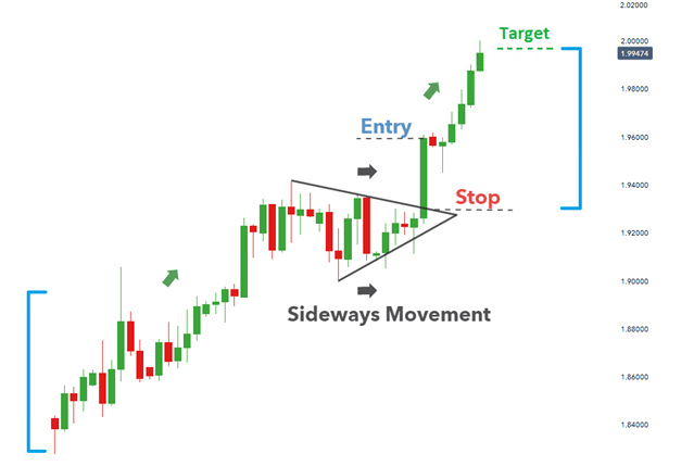 当然,请记住,市场并不总是按照您预期的方式变化,这就是为什么交易者应始终采取谨慎的风险管理。考虑到这一点,请仅使用您可以承受损失的资本进行交易。为了设定目标水平,交易者可以测量从旗杆起点到三角旗的距离,然后从三角旗之后的价格突破复制这个距离。